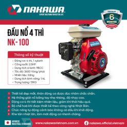Đầu nổ 4 thì Nakawa NK-100 là loại động cơ xăng được dùng thay thế động cơ để chạy và kéo máy sử dụng trong gia đình và nông nghiệp. Với tính linh hoạt và độ bền cao, máy không chỉ giúp tối ưu hiệu quả làm việc mà còn tiết kiệm chi phí đáng kể.