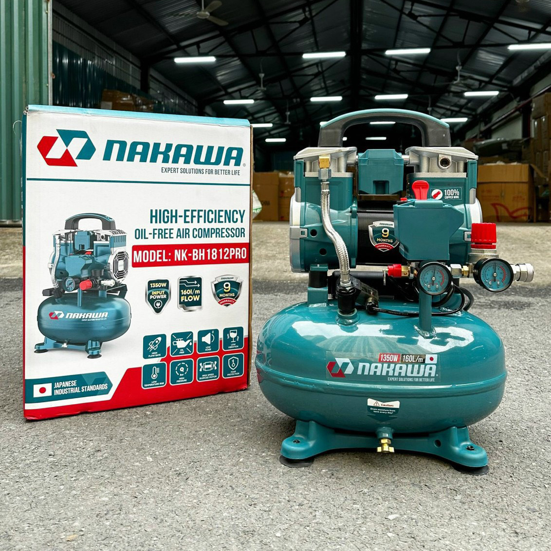 Máy Nén Khí Không Dầu Nakawa 1350W 12L NK-BH1812PRO