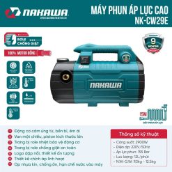 Máy phun áp lực NAKAWA NK-CW29E (không chỉnh áp) hay còn gọi là máy rửa xe áp lực cao được sản xuất theo tiêu chuẩn chất lượng Nhật Bản. Với tính năng vượt trội, máy có có thể đáp ứng được mọi nhu cầu sử dụng của gia đình như: rửa xe máy, xe ô tô, xịt rửa sân vườn, phun tưới cây cối hoặc vệ sinh máy móc, điều hoà…