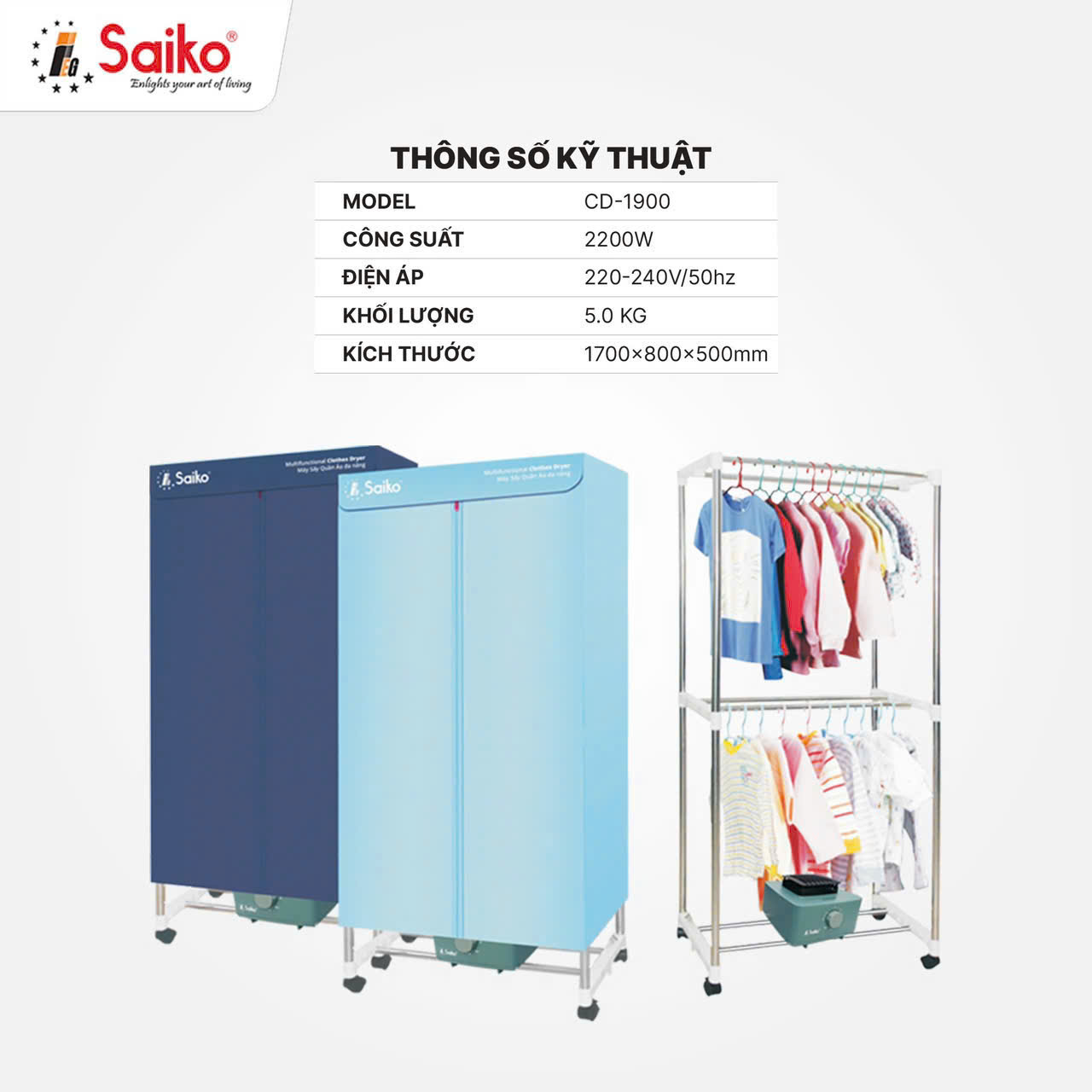Đặc điểm nổi bật của tủ sấy quần áo đa năng Saiko CD-1800